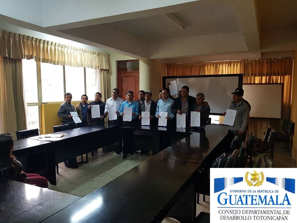 El día de hoy en las instalaciones del Consejo Departamental de Desarrollo de Totonicapán, el señor Juan Higinio Yax Say Gobernador de Totonicapán, Alcalde Municipal de Santa María Chiquimula y COCODES del municipio realizan la firma de Convenios de Cofinanciamiento para que se ejecutarán en el presente Ejercicio Fiscal 2018 con fondos de Aporte a los Consejos De Desarrollo.