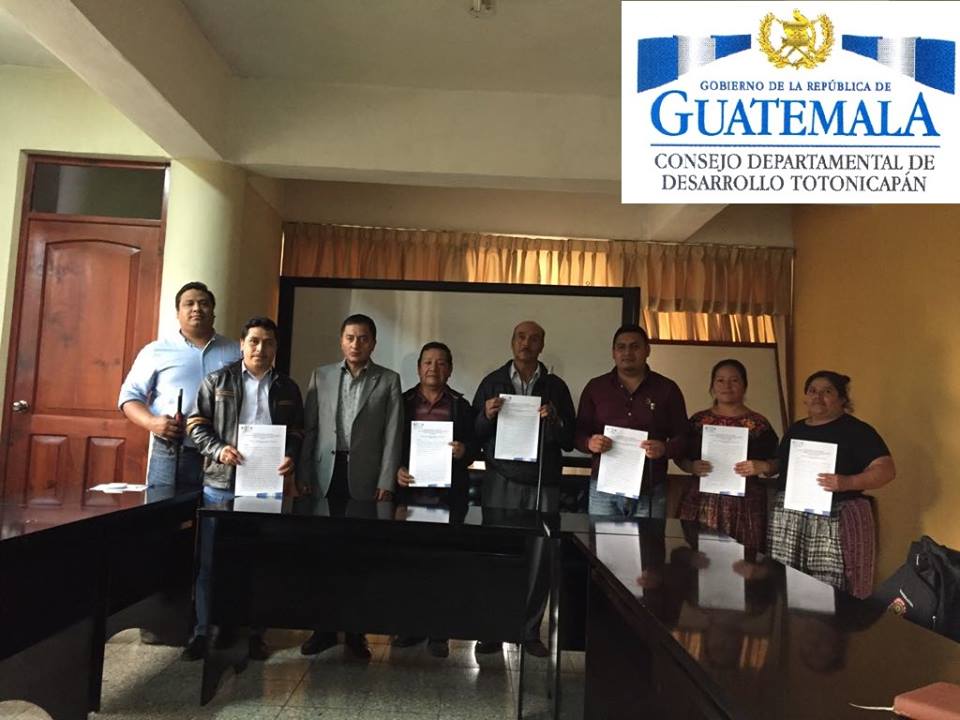 Hoy se llevó a cabo en las instalaciones del Consejo Departamental de Desarrollo de Totonicapán, el señor Juan Higinio Yax Say Gobernador y Presidente del Consejo Departamental de Desarrollo de Totonicapán, Alcaldes Comunales del municipio de Totonicapán realizan la firma de Convenios que se ejecutarán en el presente Ejercicio Fiscal 2018 con fondos de Gobierno Central a través de éste Consejo.
